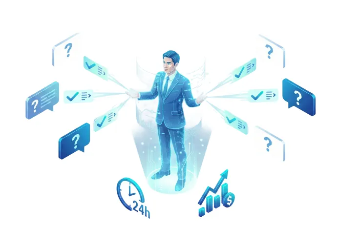 - 新人でも、ベテランと同じ品質で判断・回答が可能に。属人化からの脱却を実現します。
