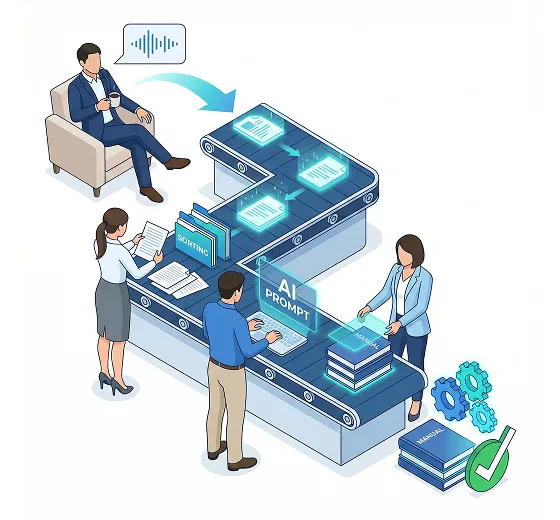 業務整理〜プロンプト構築〜マニュアル作成まで一気通貫で代行。