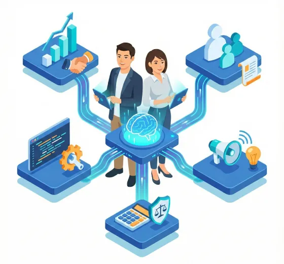営業、人事、開発、管理など5領域/25種のAIに対応。ChatGPT業務活用はもちろん、既存フローとの連携も設計。