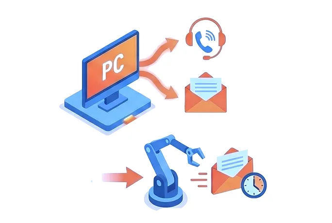 手打ちで電話し、不通ならメールを手動送信。1件のアプローチに時間がかかりすぎている。